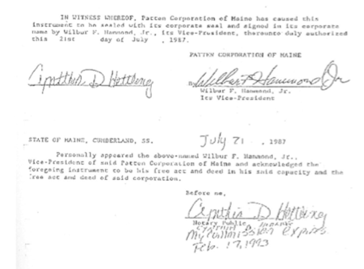 THIS DECLARATION dated this 21st day of July, 1987, by PATTEN CORPORATION OF MAINE, a Maine Corporation organized and existing under the laws of the State of Maine, with a place of business at Portland, in the County of Cumberland and State of Maine, hereinafter referred to as the Grantor.